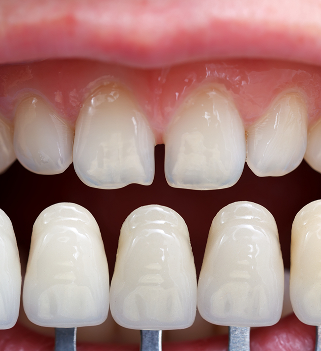 Veneers are thin sheaths of dental-grade porcelain that are affixed to the front-facing surfaces of teeth to conceal cosmetic flaws. We typically recommend veneers for those patients who want to correct numerous imperfections, including: